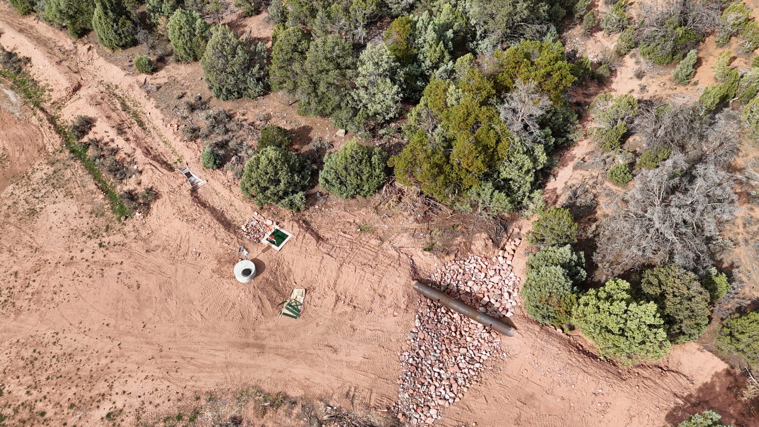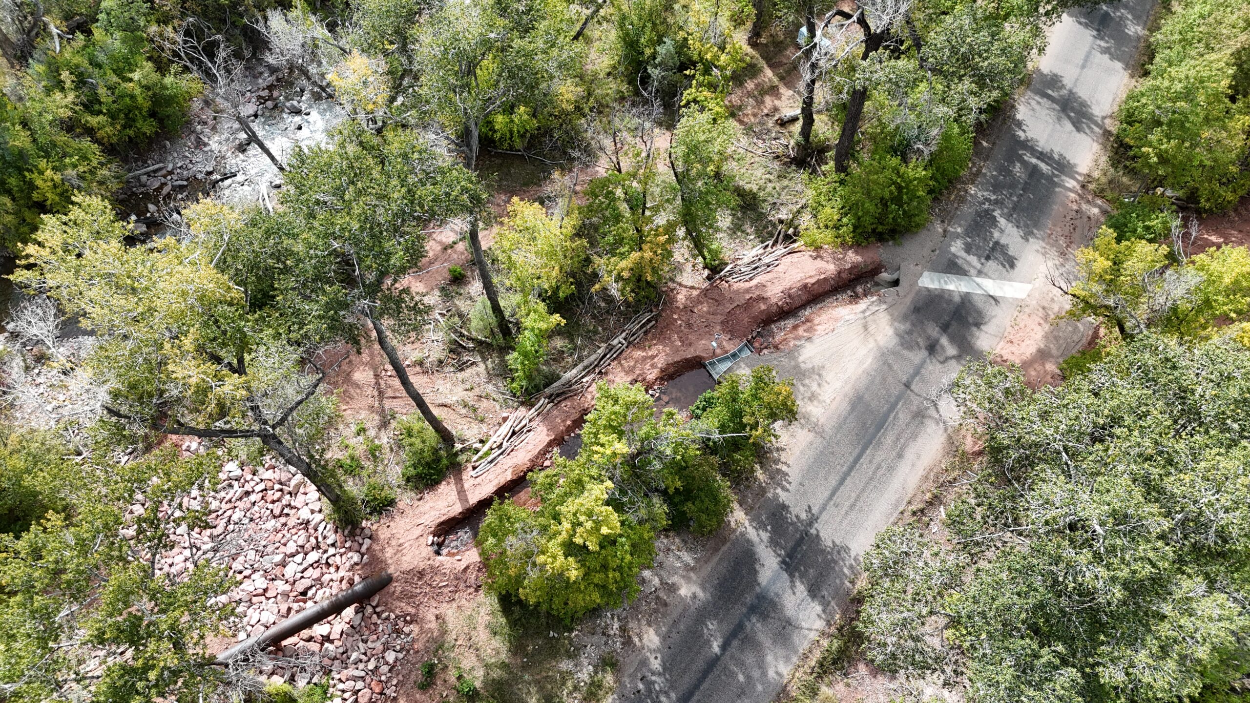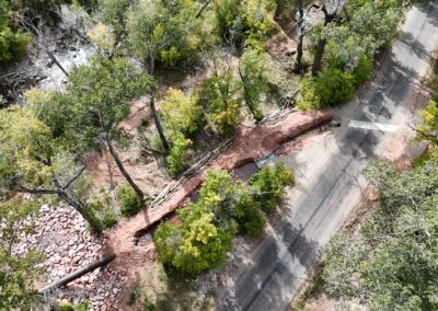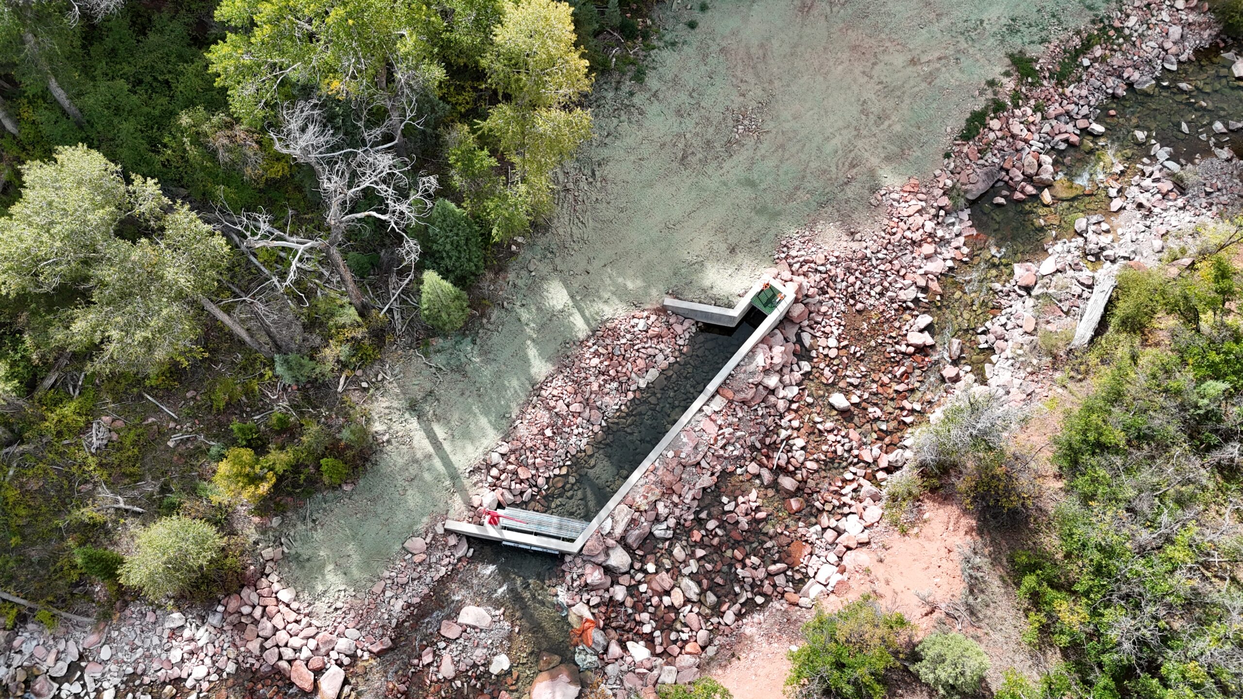 In addition, Kissner placed a total of 2,423 LF of 30″ HDPE pipe, 502 LF of 24″ HDPE pressure pipe, and 100 LF of 30″ steel pipe. Kissner installed buried cable for telemetry as well. The diversion structures were backfilled and compacted, and boulders were placed to create wall crests. Final grading and seeding completed the project.